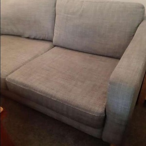 Grey IKEA Couch Free to a Good Home. COLLECTION ONLY. Needs to go today 07/09 - 08/09 Still in really good condition, but covers could do with a scrub. No real marks, photos reflecting more shadow than expected. This is from a Smoke free home, but has been in contact with a dog (for the purposes of allergies - it doesn't smell doggy!). No rips or tears. Only getting rid of it as we've up-sized our sofa and don't have the room we thought we would to keep it! Size - 80" W x 27" H x 36" D