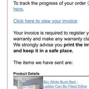 White bunk beds with integrated shelves. Now flat packed for transport. Screws placed in bag for rebuilding. Original bought from furniture123 online.