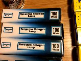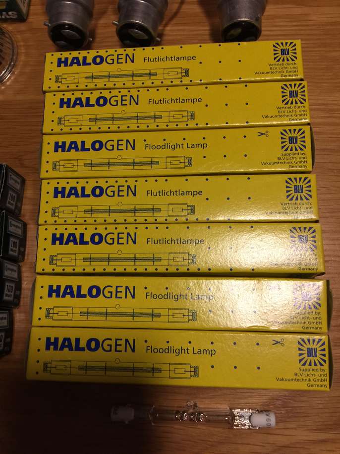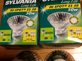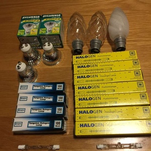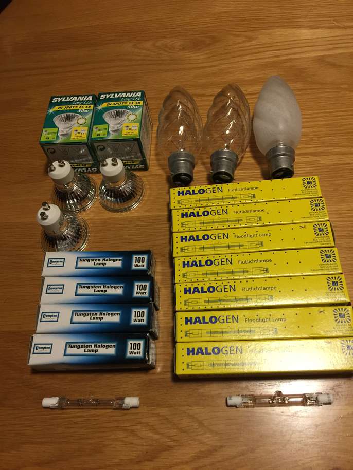 We have several various lamps that may do someone a good turn. Those in the boxes are all new and the others are all working fine. The halogen lamps are 60W and 100W the GU lamps are 50W. It would be a shame to have to bin these!