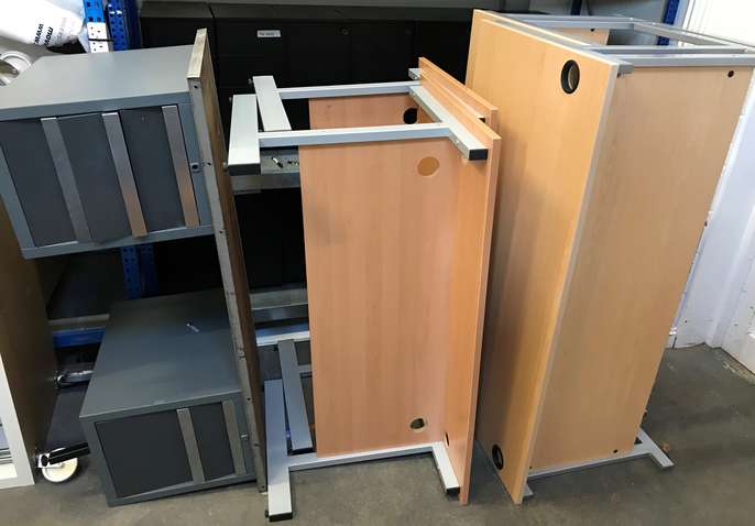 10 office desks in good condition. One is metal in poorer condition, more suitable for a workshop. Take as many or as few as you need. Collect in office hours Mon-Fri 9-5:30