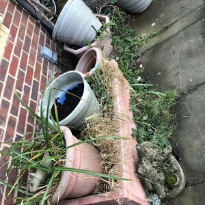11 plant pots in total, 9 circular and 2 troughs. Belonged to my ex wife, I have no use for them. Take as they are. Collection from EN2