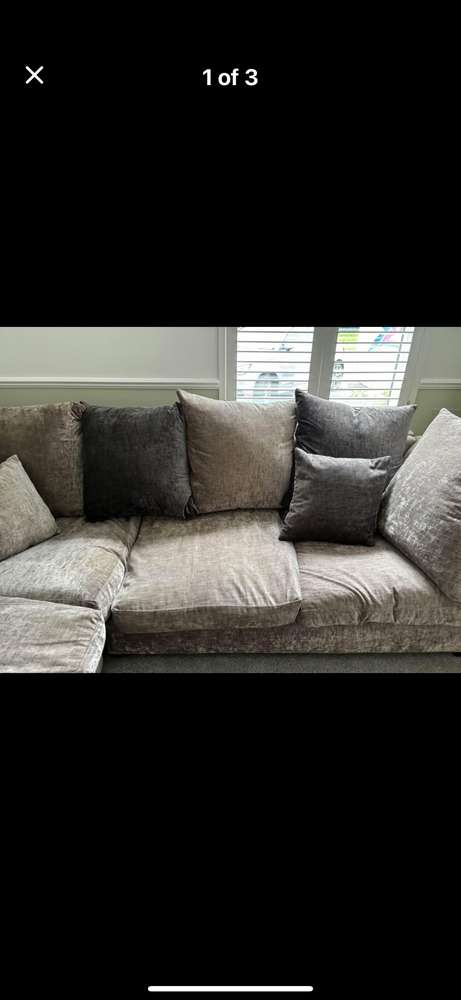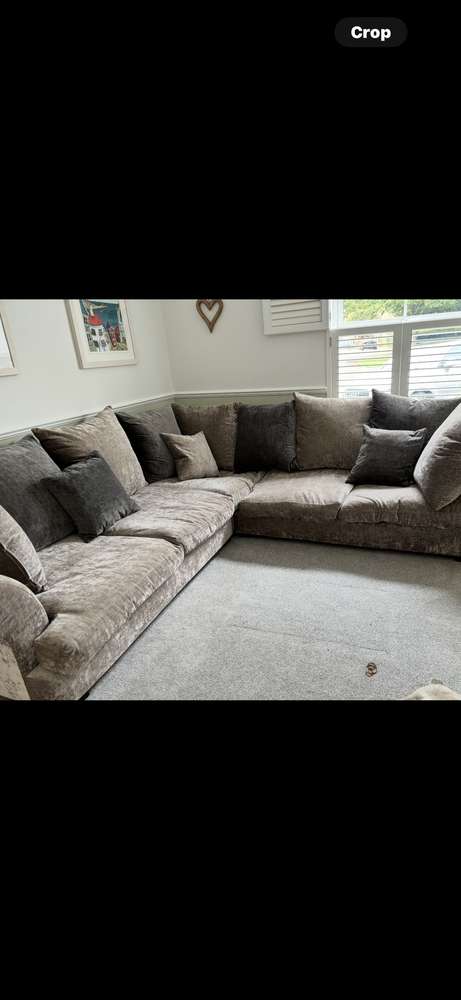 Very large corner sofa This item is in Kings Hill GB All the details Crushed velvet looking corner sofa with feather cushions Category Furniture Request This Item Ask a Question Post Message