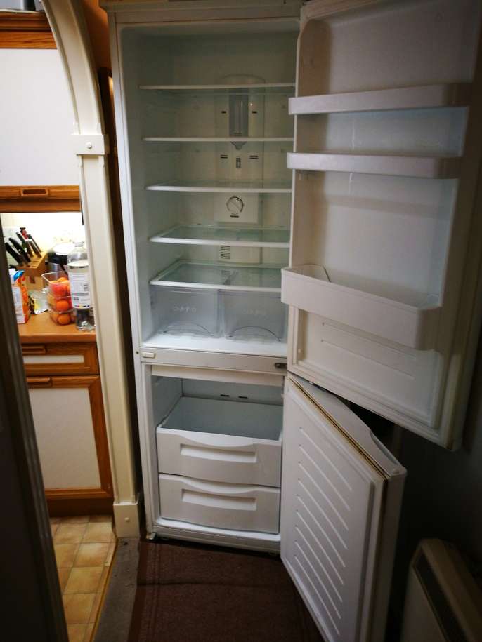 2 M tall 60cm wide Daewoo fridge freezer. This is a used one that works but we have replaced it with a new one. The freezer drawers are cracked but if your having a wedding or big summer party it would be great. Or as a garage fridge. We are in reigate. Rh27 post code If you ask for it and its offered, please Do actualy turn up!