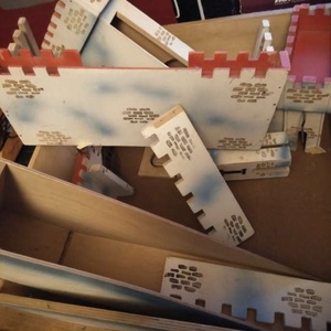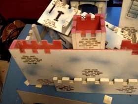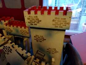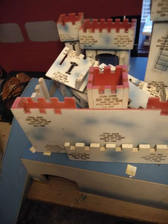 Lovely handmade wooden castle, approx 40-50 years old. Comes apart, could do with a little bit of restoration but perfectly useable for playing or display as it is