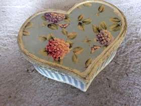 Vintage style jewellery box This item is in Belper GB All the details Floral vintage style heart shaped box in vgc. Hinged lid. Lined inner. Category Everything Else The Request Period For This Item Has Ended The request period for this item has ended Post Message