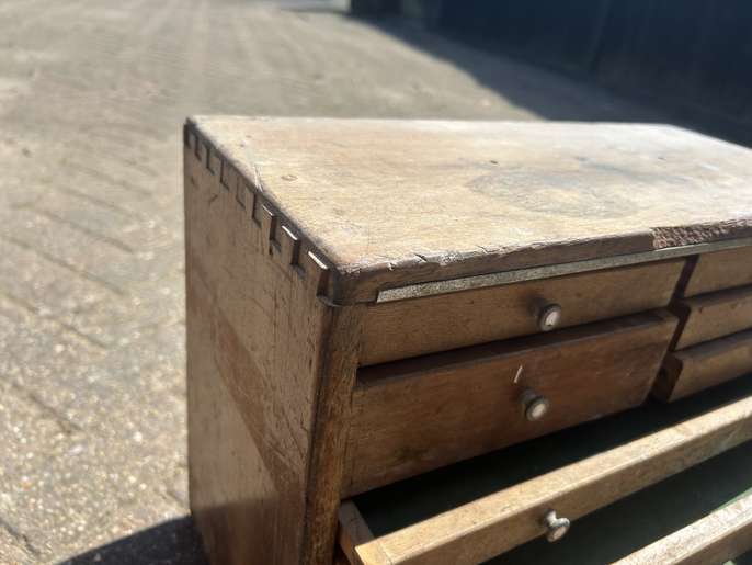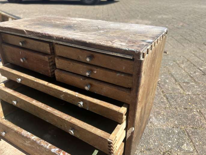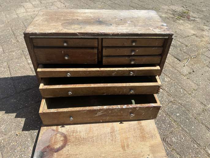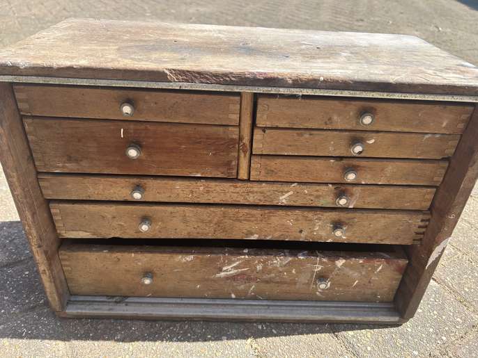 These engineers drawers are probably from the 60’s and are in need of restoration and repair. May be a nice project for someone with the time and the skills. Only thing missing is the key. Collection from Horley.