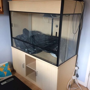 One large vivarium with matching base storage unit. Heater and lighting installed. Vivarium - H92 x W122 x D62 cm Base unit - H61 x W122 x D62 cm