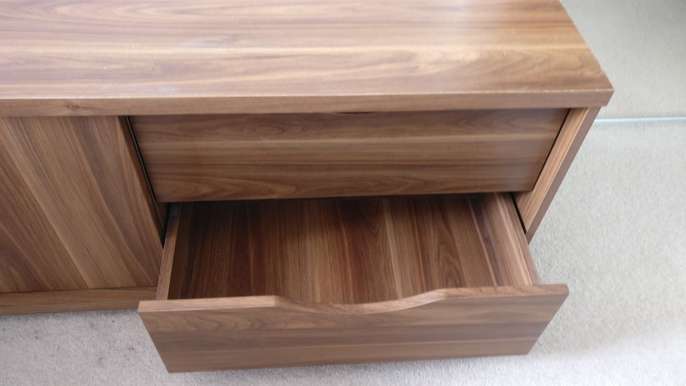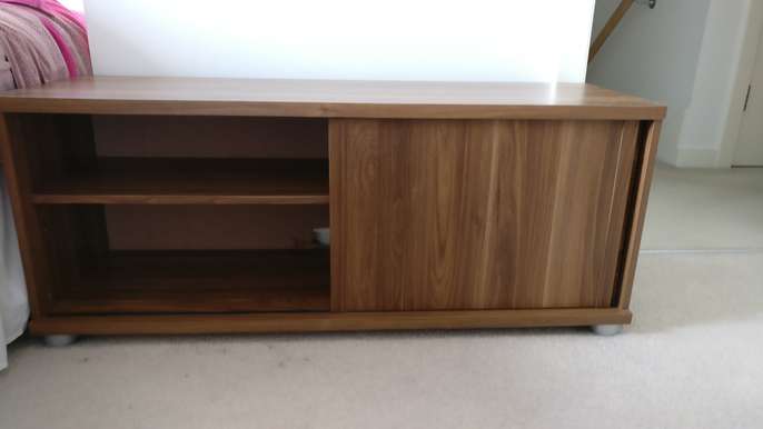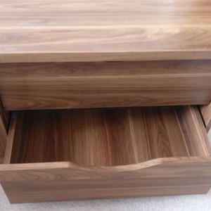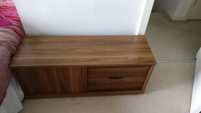 Walnut bedroom cabinet for sale. Top is a bit scratched, but otherwise food condition Dimensions D: 38.5cm W: 116cm L: 46