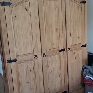 3 door solid pine wardrobe. As new Moving this Monday must go but has to be take apart to take away Phone 07517871638.