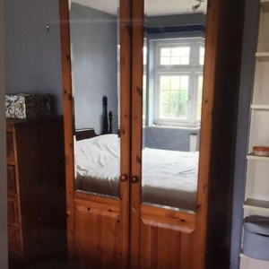Two lovely single mirrored wardrobes that screw together to make a double. Very good condition. Have been dismantled today for easy collection and to get down stairs