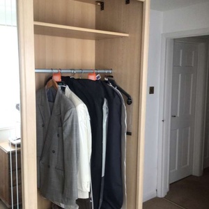 This is a mirror fronted wardrobe. It is 7’3” high, 6’7” wide and 2’3” deep. I cannot take a picture of the outside as it just shows the reflection. I have attached a picture of one side of the inside. It is in perfect condition.