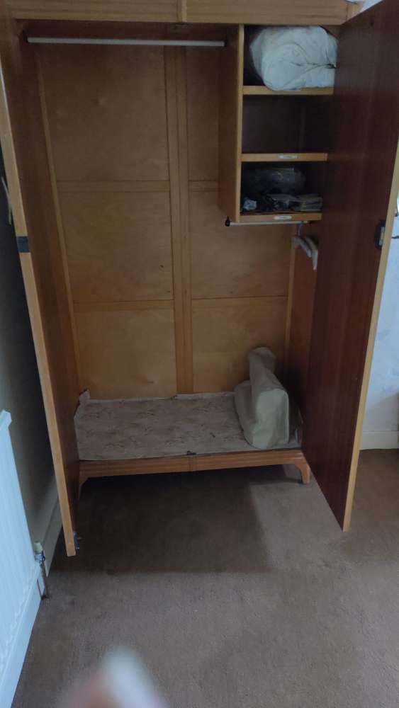 Wardrobe and bedside unit This item is in Hitchin Hill GB All the details Lockable 1950's all wood wardrobe and bedside unit Category Furniture Request This Item Ask a Question Post Message