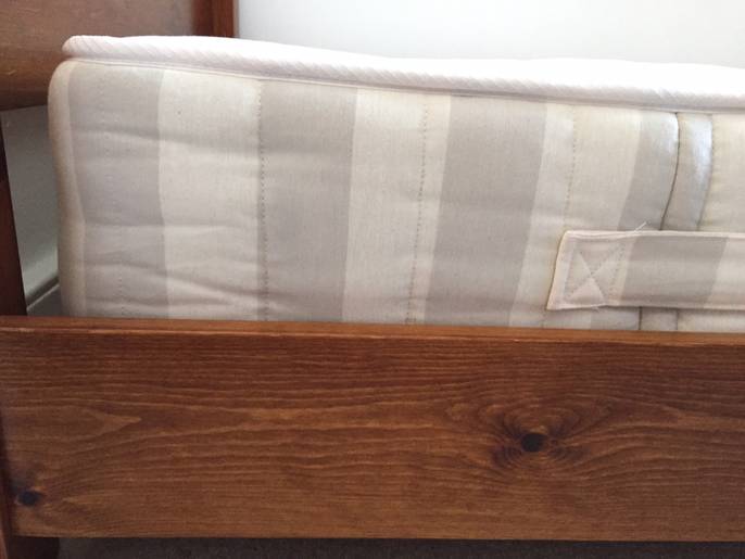 Warren Evans small children's solid wooden low bed frame and mattress These are only 3 years old and both the bed and mattress are in excellent condition (as seen in the photos). This is a very solid bed, perfect for transferring a toddler from cot into a full sized bed. The measurements are 180 cm (L) x 100 cm (W) x 53 cm (H) from the headboard and 33 cm from floor to the mattress. This comes from a smoke free house. I have dismantled this for collection but it's very easy to reassemble.