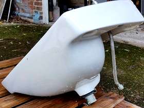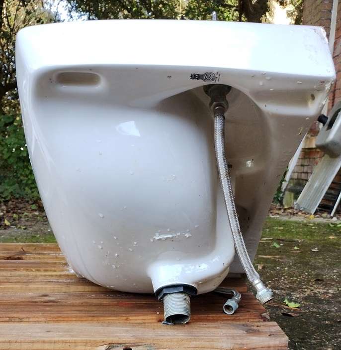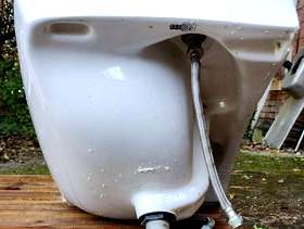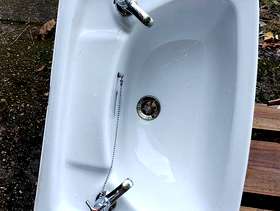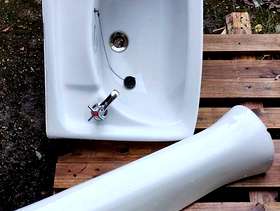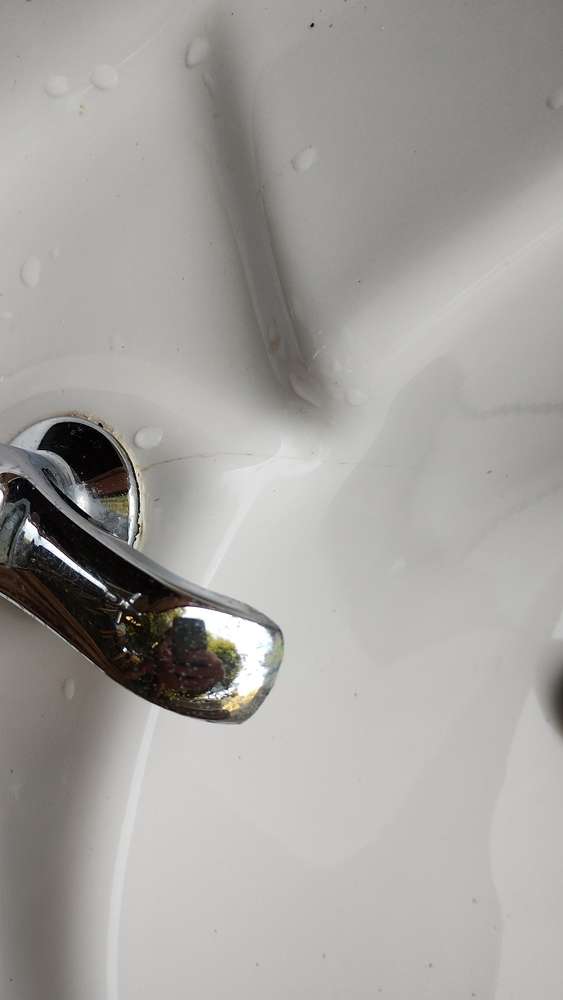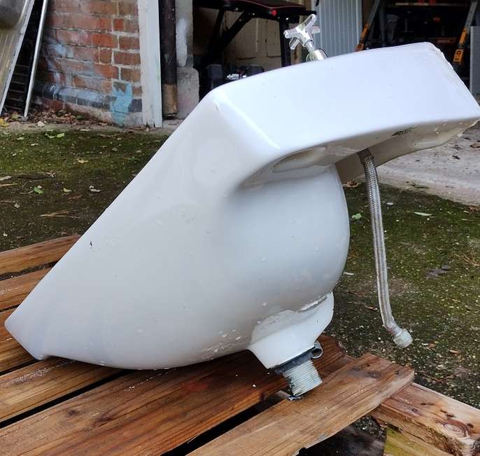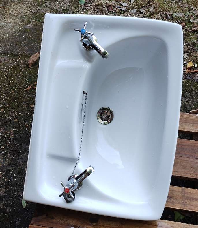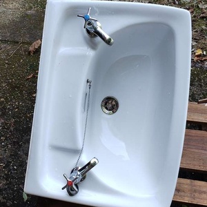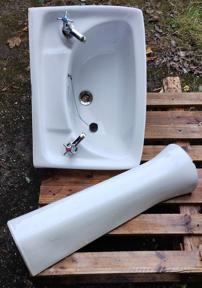 Hoped I could sell this but it has a small hairline crack by the left tap and a chip on the pedestal. Perhaps someone can use it - planter maybe?