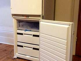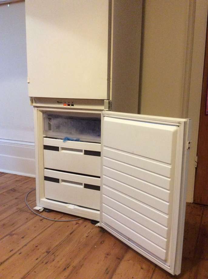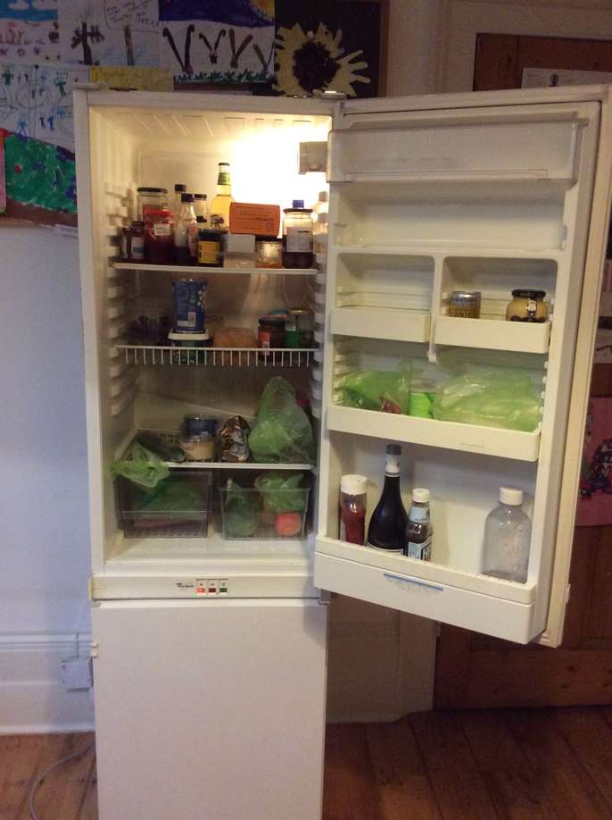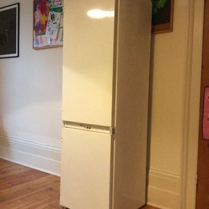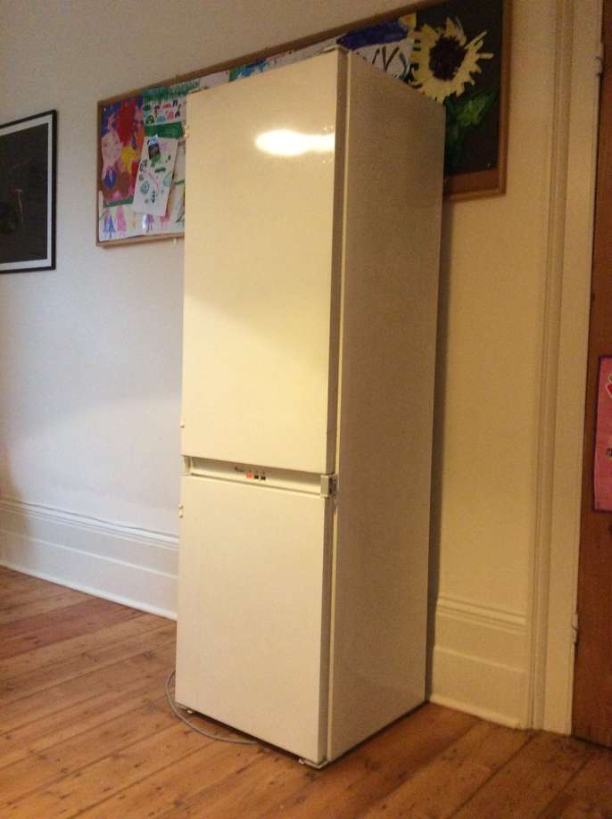 Free fridge freezer! 10 years old but in good condition. Only getting rid of it as we have bought a bigger one. 55cm wide. 51cm deep. 177cm tall (fridge 105cm, freezer 70cm) Collection from N1.