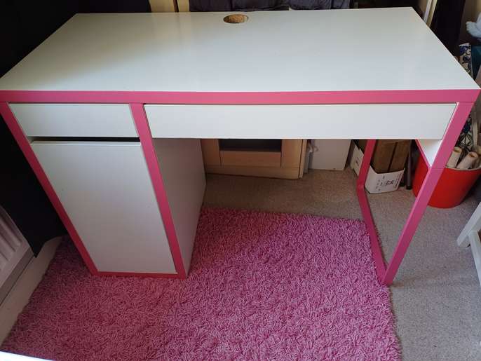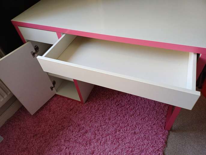 Sturdy girls desk with drawers. Would suit bedroom. In good condition. Daughter has outgrown it. Free to collect.
