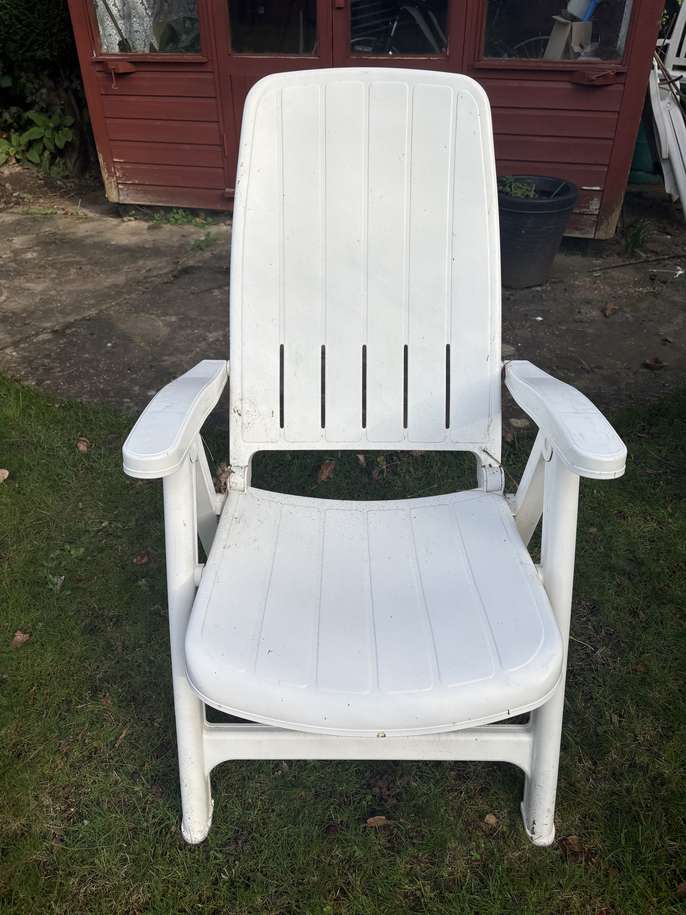6 standard chairs, one bench and two recliners. All quite solid but will need a good clean as been outside for some time