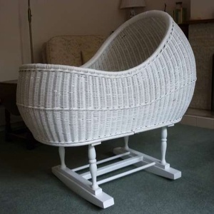 Delightful white rocking crib. Lead-free paint, and own as new mattress.