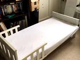 Small tea stain on mattress otherwise in very good condition. Easy to assemble and dismantle. It's stored at my daughter's house in West Wickham a 5 minute drive from Keston.