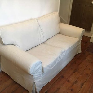 Two seater white sofa in good condition (just a few small marks). Dims 180cmx90cmx90cm. Will need a large car/ van for collection.