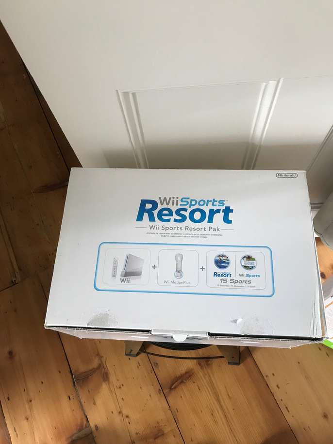 Complete Wii Sport resort pack + Balance board. All items seem to work perfectly, but there would be an issue with the bluetooth receiver (within the station). Marzia