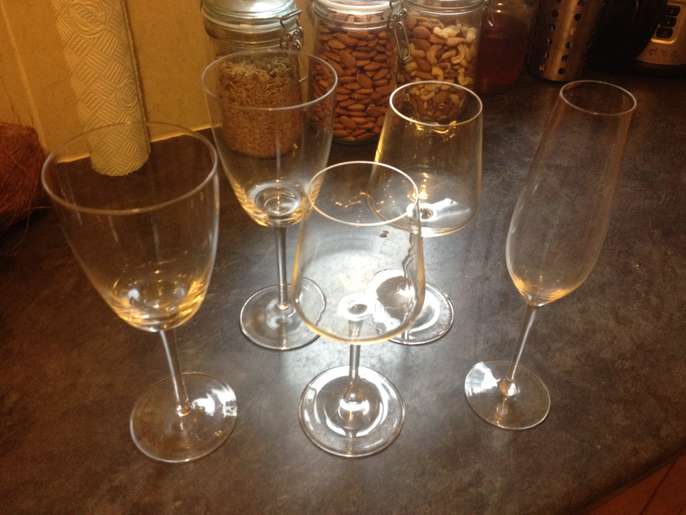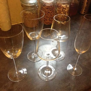 Wine glasses and large/small plates