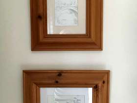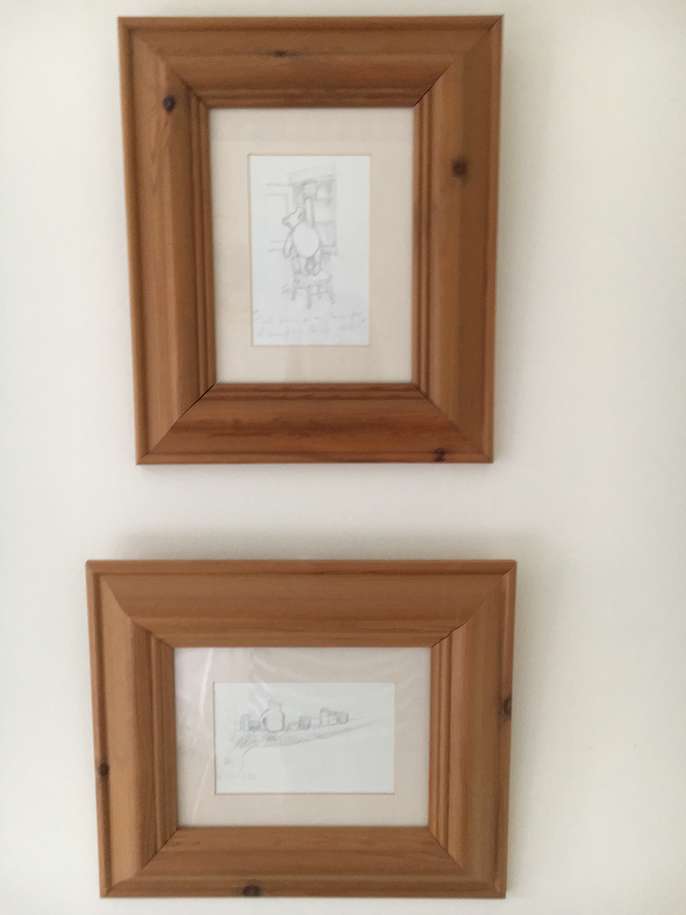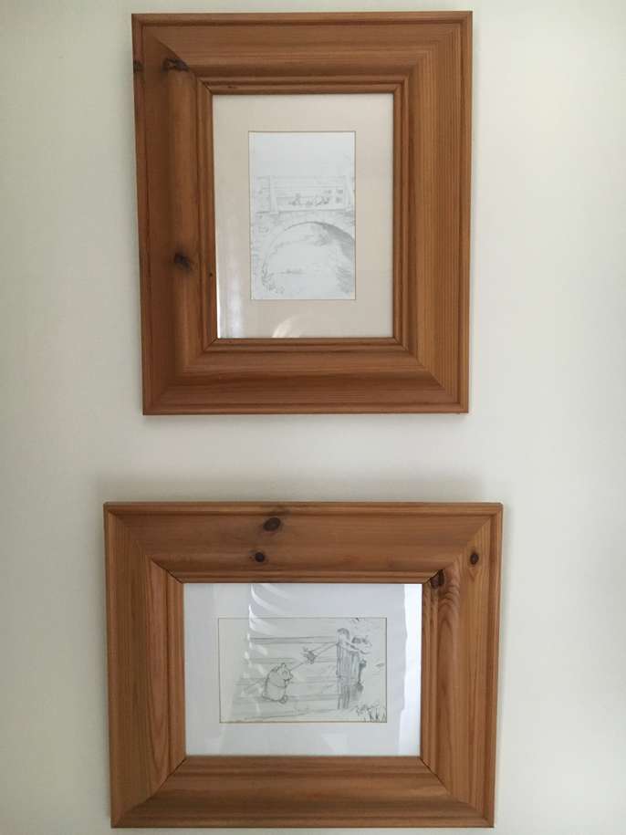 4 Winnie the Pooh and Christopher Robin pencil sketches in pine frames. Frames approx 13 x 11 inches