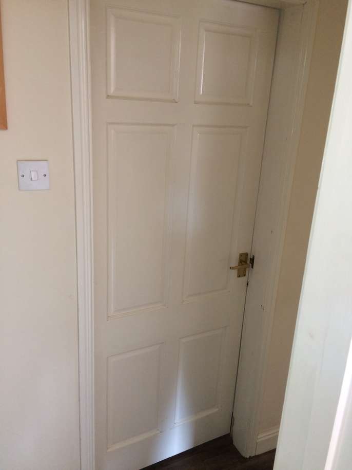 2 Wooden painted panel internal doors. Measurements 78" x 29.5-29.75" Collection Easingwold