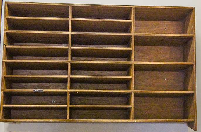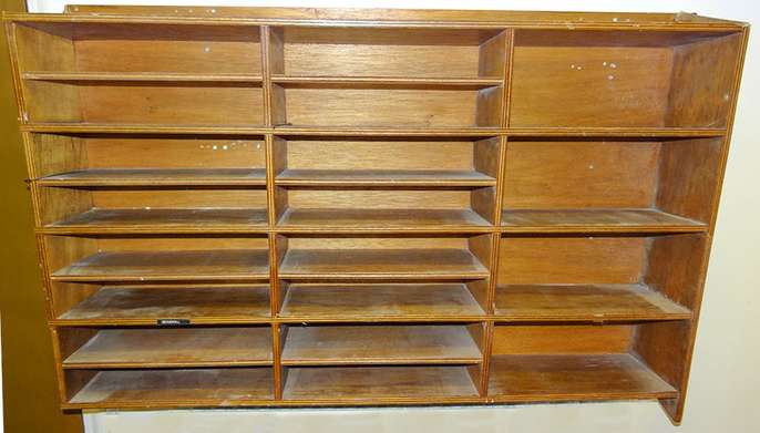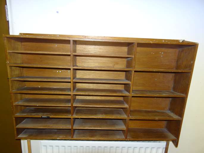 Wooden Angled Shelving - shop - office - letters - paperwork - school - post etc