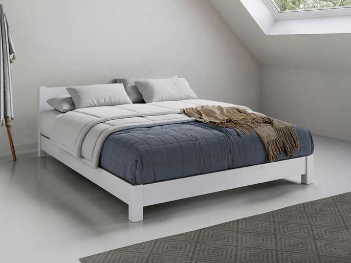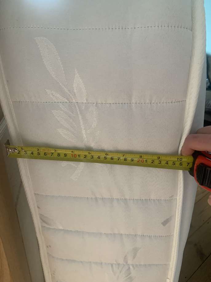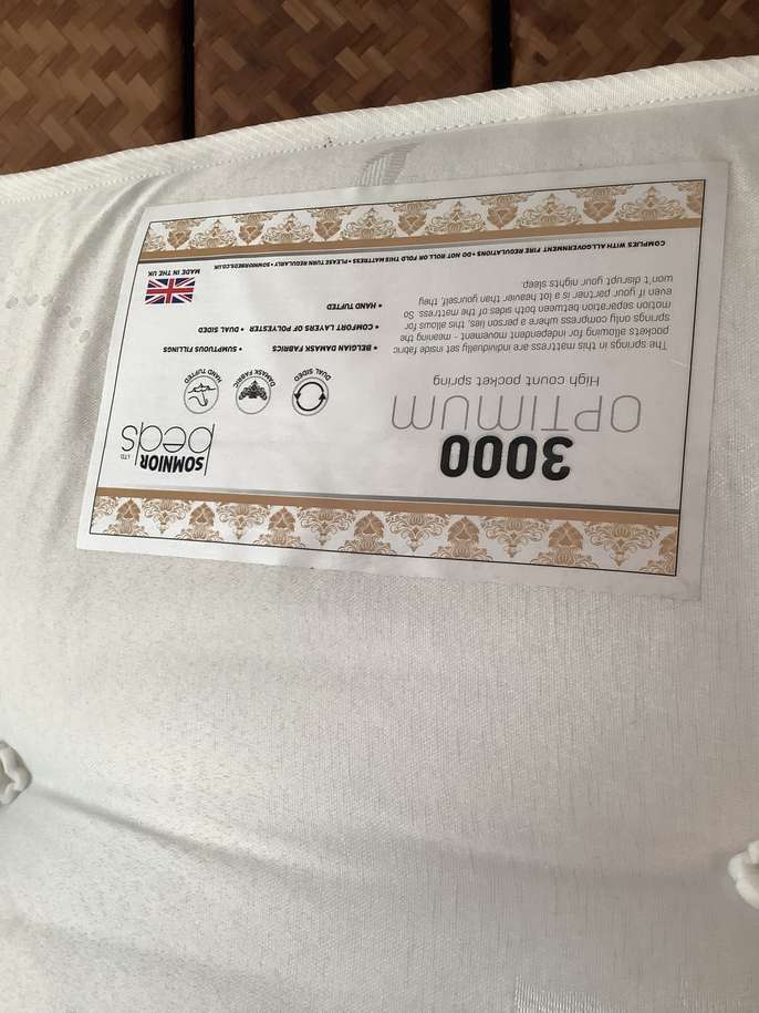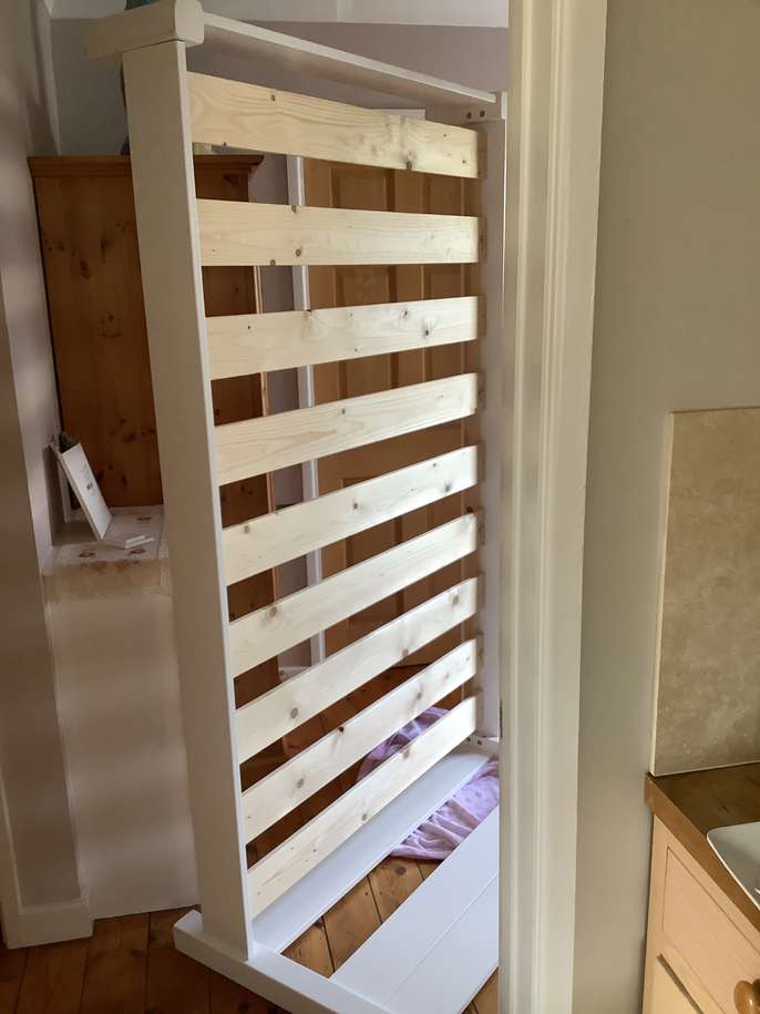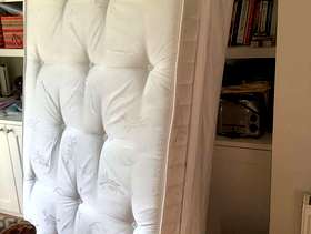 Solid white wooden bed frame with mattress - small double, good condition. Here is a picture of it, bedding not included.