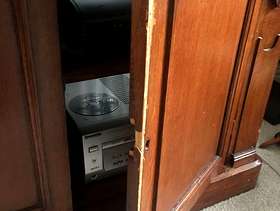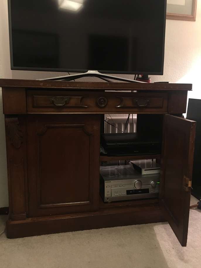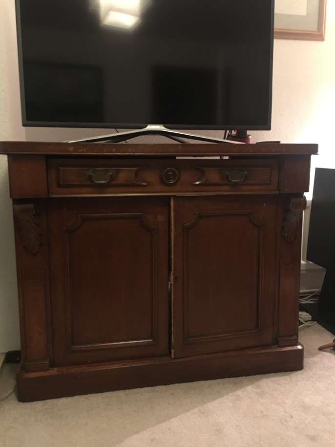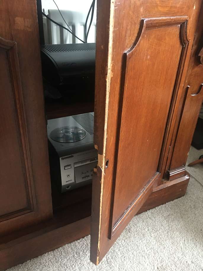 Wooden cabinet We are moving house and can’t use it anymore Will needs some work as seen on the pictures Dimensions 104cm , 40cm, 87cm