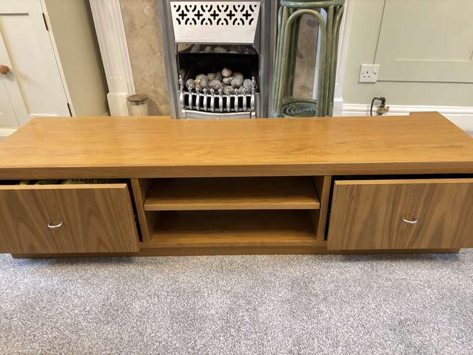 Wooden low tv stand This item is in Kings Hill GB All the details Low wide tv unit with 2 drawers Category Furniture Request This Item Ask a Question Post Message