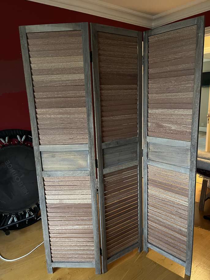 Wooden slatted screen This item is in Beaconsfield GB All the details Attractive wooden slatted screen or room divider, three sections Category Furniture Request This Item Ask a Question Post Message