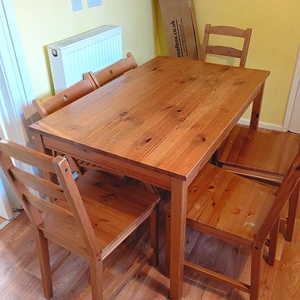 FREE. Wooden table. 118cm long, 75cm wide. Has some scratches and pen marks from years of use, hence free. But fully usable. Just table, NOT chairs. Collection only, from Brampton, can't deliver. Have removed table legs for transport.