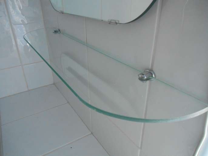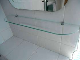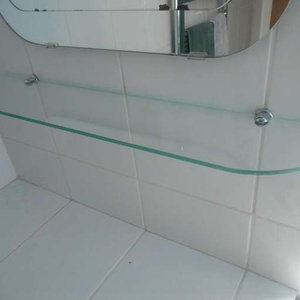 X2 Ikea glass bathroom shelves with curved ends. Complete with wall fixings. Dimensions: 600mm Width X 110mm Depth (wall to front edge) 5mm thick glass Available to collect now.