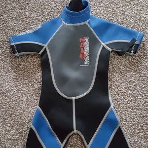 Only used few times. This is a very small size. Ive measure the actual wetsuit to help and laid flat it is 55cm full length and waist is 22cm across. The tag says to fit a size 20" chest.