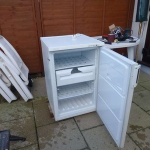 Zanussi free standing freezer ZVC 45 bit tatty still works and comes complete with baskets but broken plastic shelf fronts ,